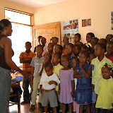 But I digress. The orphanage that we stayed at now had about 50 children during the day, and 20 at night. We spent two days with these children, and watched Mami Kikine and Madame Annie teach them their lessons through song and dance, through call and response, through dedicated sweat and love. The children crowded around the three tables- actually delaminating doors set onto table frames- and listened and learned. Shortage of chairs meant that in many situations, two chairs became seating for four with the addition of a wooden plank between the chairs. The children learned and rehearsed, sang and danced, and carefully copied their assignments into their notebooks. It was thrilling to be a part of this, to see them learning and listening, and to see them reflect our own encouraging emphasis on education with such motivation. The sweat poured off Madame Annie while she provided an entire hour of call-and-response French lessons.